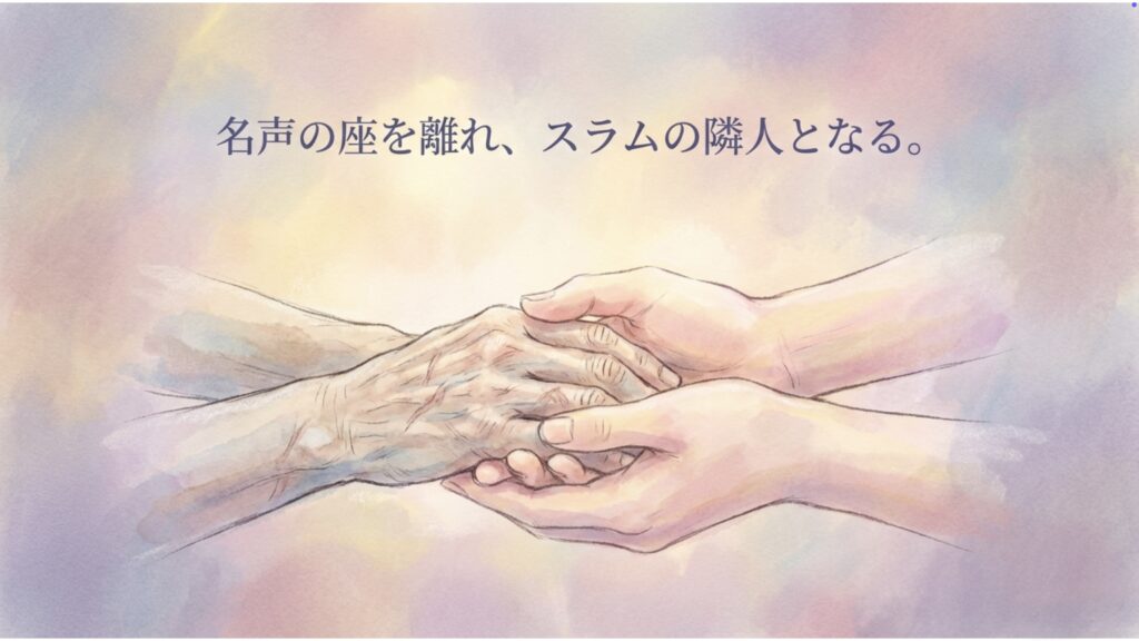名声を得た後も、彼女がそれに安住せず、貧しい人々の中へ身を置いた、と語られます。